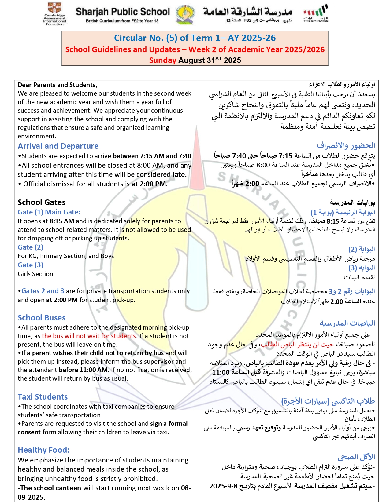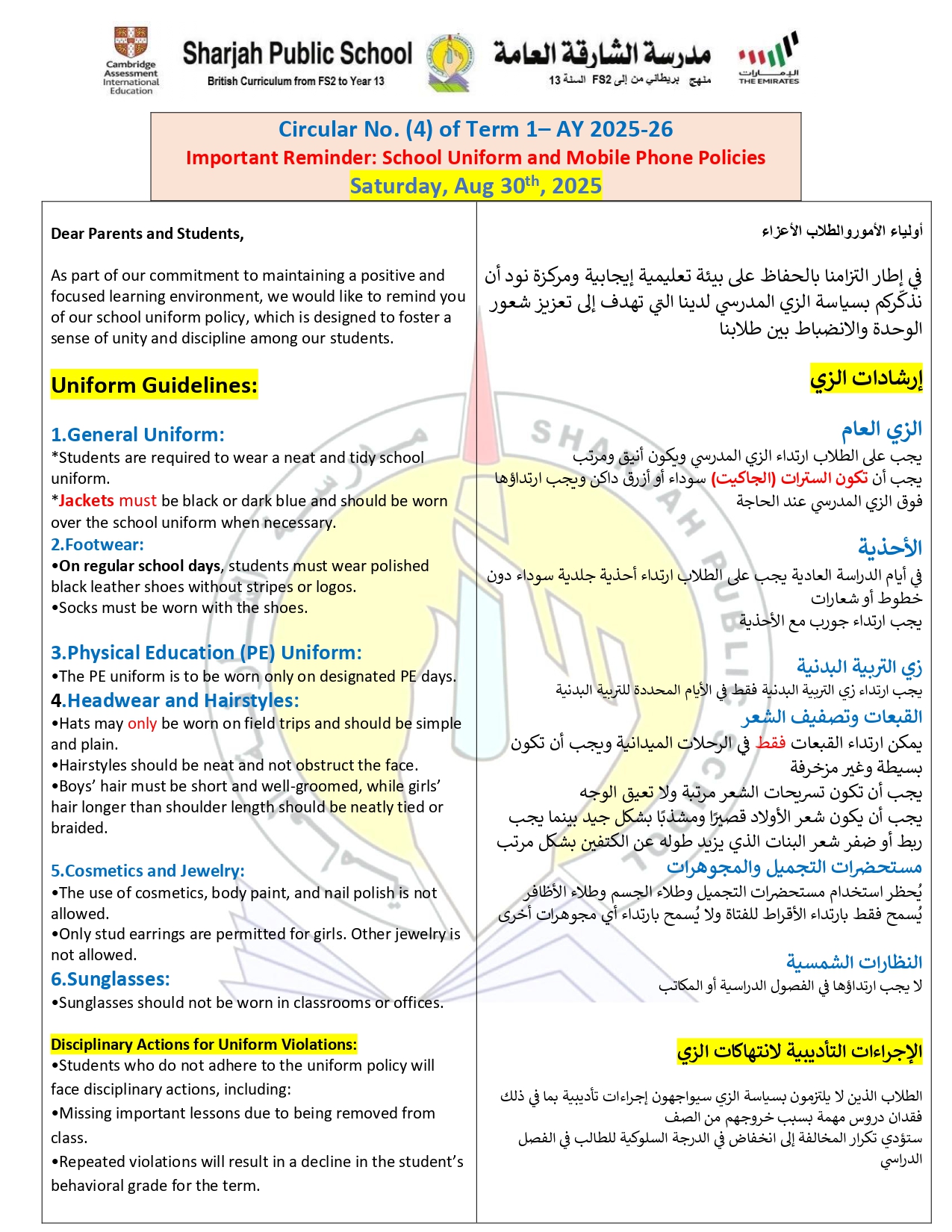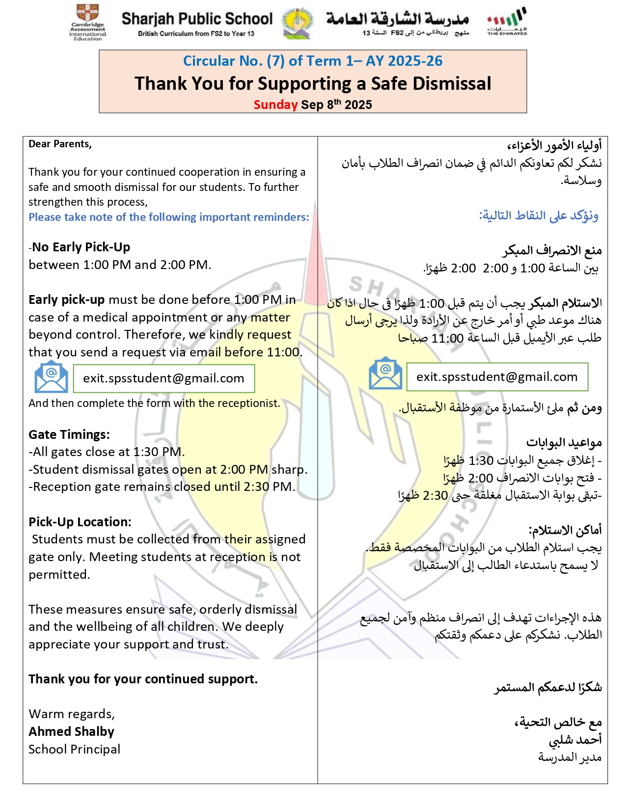 Term 1 2025-2026 Thank You for Supporting a Safe Dismissal